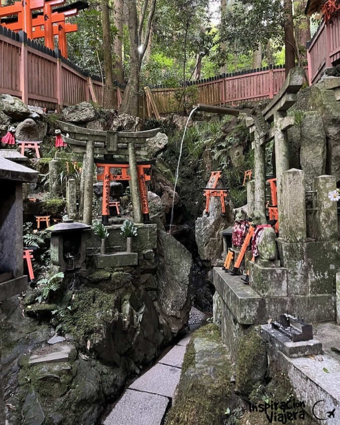 Este santuario es uno de los rincones más tranquilos del Fushimi Inari porque está en una ruta menos transitada, alejado del camino principal. Nosotros fuimos a visitarlo para hacer tiempo mientras abrían la tienda de los torii personalizados. También tienen una tienda de amuletos que abre bastante temprano.