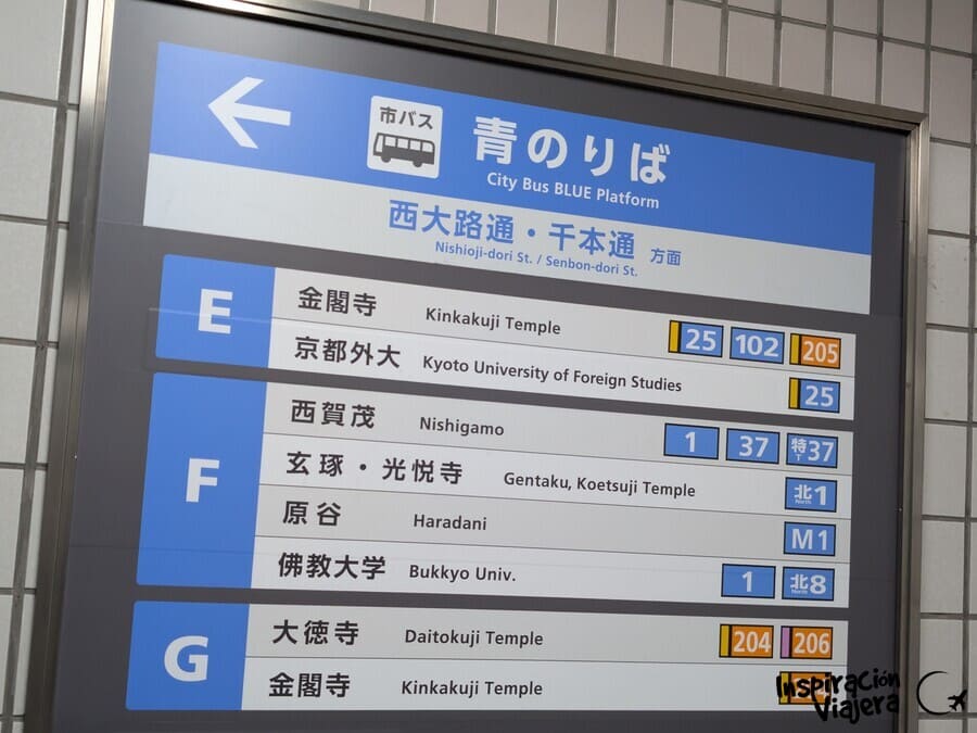 JR + bus: Kyoto Station → JR San-in Line → JR Enmachi (Emmachi) → City Bus 205 → Kinkakuji-michi. Es más rápido, pero la JR no entra en el pase de 1 día, por lo que será más caro.