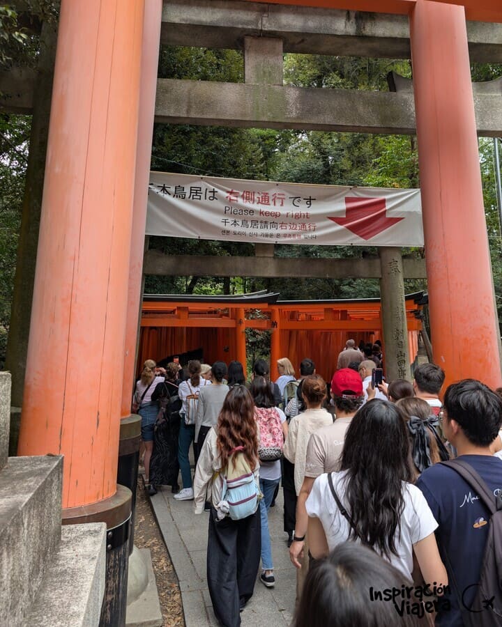 Al principio del recorrido encontrarás los torii más grandes del recorrido, y según vayas subiendo, se harán cada vez más pequeños y separados en pequeños grupos. Como consejo, aprovecha las primeras zonas de torii para hacer las fotos más bonitas y no esperes a llegar arriba, porque cuando vuelvas ya estará todo intransitable.