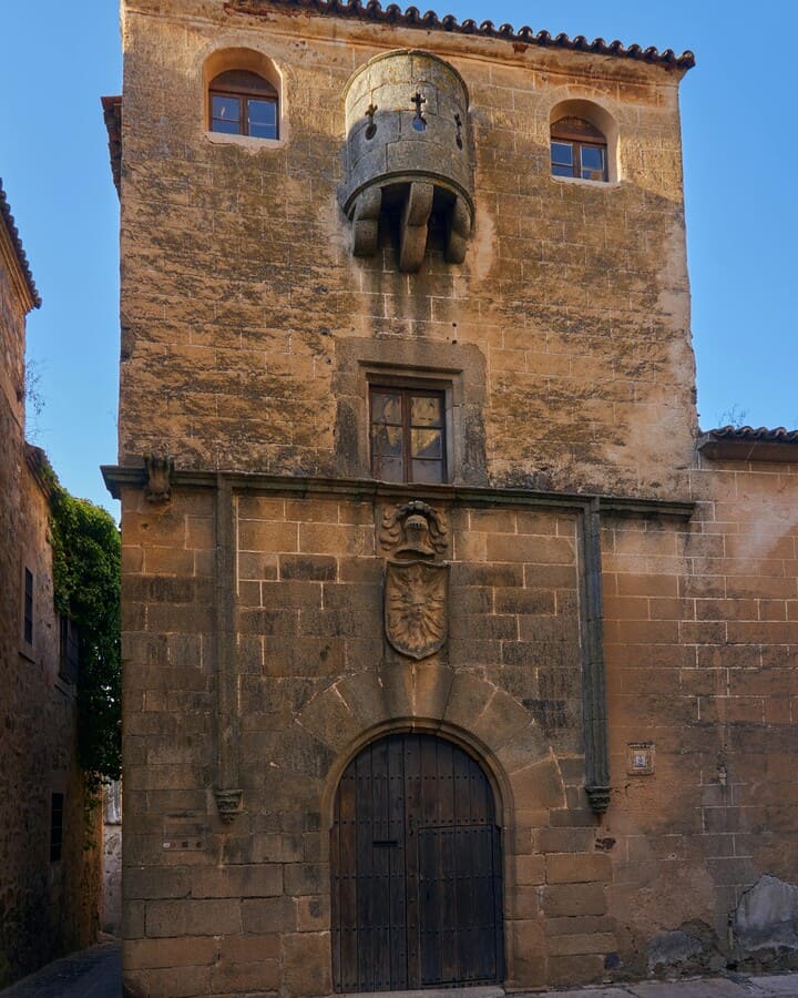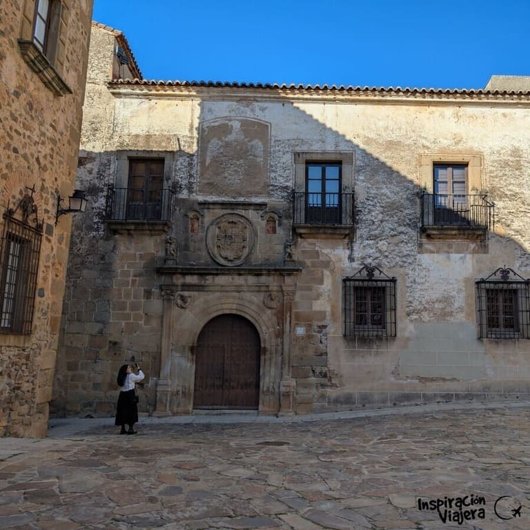 Ya en la parte alta de la ciudad, verás la Casa Solar de los Ulloa, un edificio del siglo XV con una fachada heráldica y ventanas góticas. Perteneció a una de las familias nobles más belicosas de la zona. Es de propiedad privada y no se visita por dentro, pero su exterior es uno de los que más me gusta de Cáceres. Está en una calle que puede pasar algo desapercibida para la gente, así que no te lo pierdas porque tendrás que desviarte un poco para verla.
