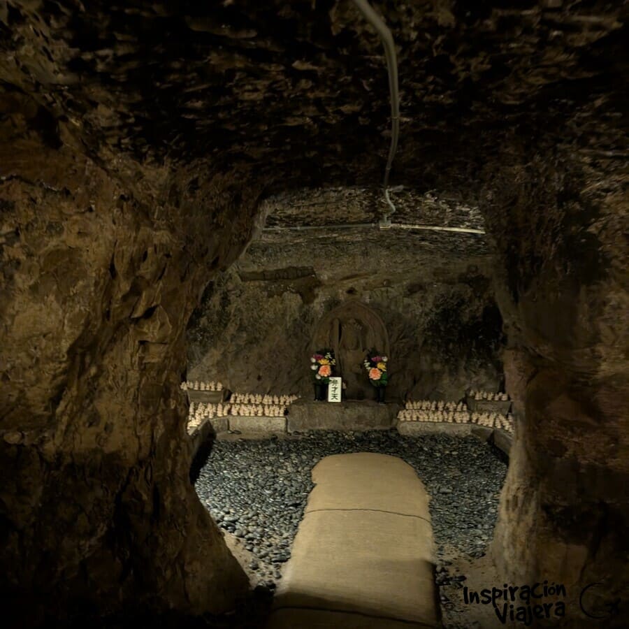 La pequeña sala de Benzaiten (música, sabiduría) da paso a la Benten-kutsu Cave. El recorrido es estrecho y oscuro y se hace agachado casi todo el tiempo (¡cuidado con la cabeza!); si tienes claustrofobia o movilidad reducida, mejor evítalo. En las hornacinas verás relieves y pequeñas figuras; al final hay un espacio para dejar ofrendas con el nombre y el deseo.